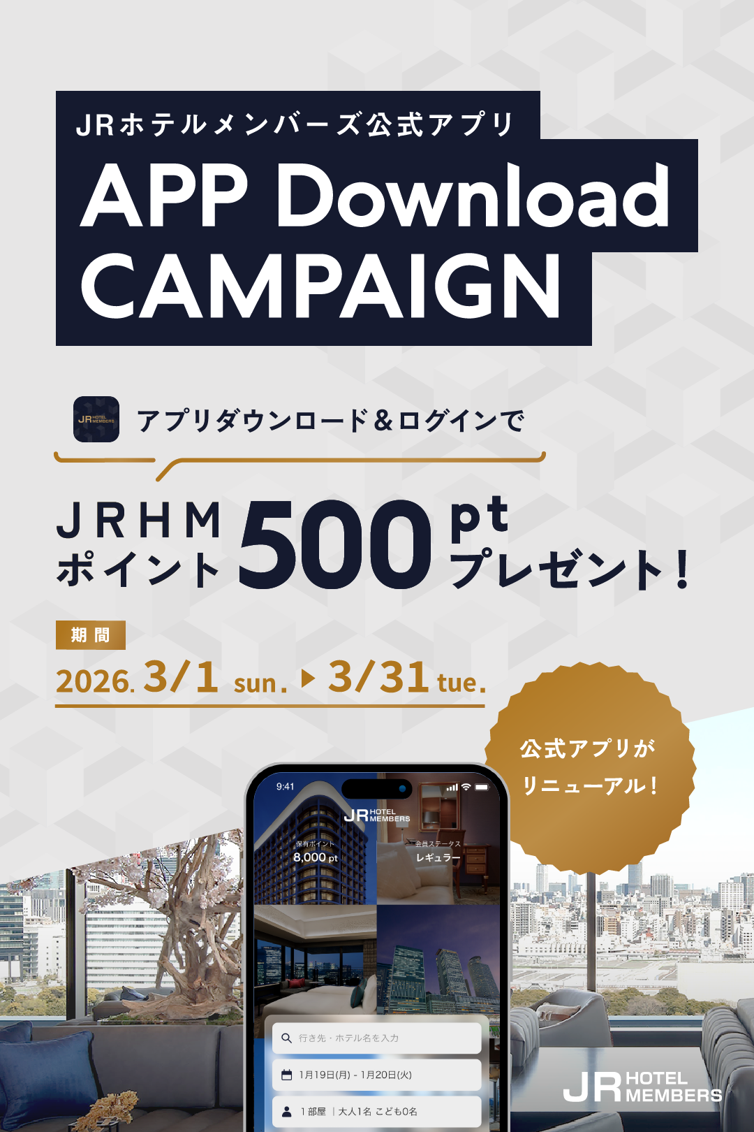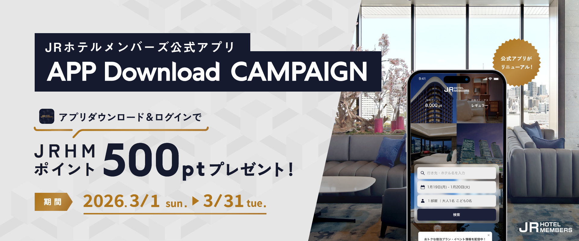 キャンペーン期間中に「JRホテルメンバーズ 公式アプリ」を