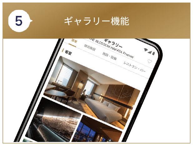 ホテルの外観や客室など今まで以上に各施設のイメージが伝わるギャラリー機能。