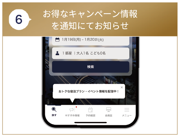 ホテルから「おトクなプラン」や「おすすめ情報」などが配信されます。配信されると